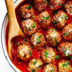 Form the meatballs. Using a medium cookie scoop or a spoon, scoop and roll the mixture into 2-tablespoon balls and place them on the prepared baking sheet. (I recommend greasing your hands with a bit of olive oil to prevent the mixture from sticking.)